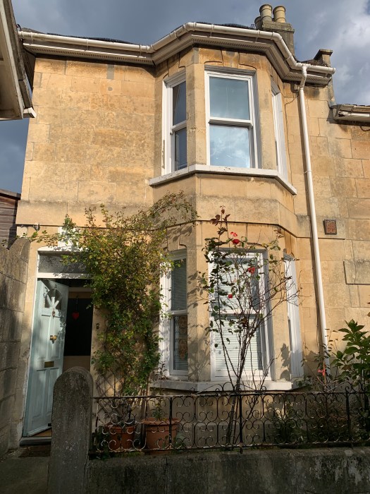 The house has two bedrooms and a bathroom upstairs, and a living room, dining room and kitchen downstairs. The bathroom is stacked on top of the kitchen in a two storey block that juts out characteristically from the main body of the house, as it does in most Victorian homes. Mine is the last house in the terrace and has solid walls, also called ‘traditionally constructed’ walls. This means there is no cavity, but I know that there is a small gap in the walls of the main body of this particular house because when my windows were being changed, I saw that there is an internal skin of engineering brickwork adjacent to an external skin of cut bath stone blocks, or ashlar.